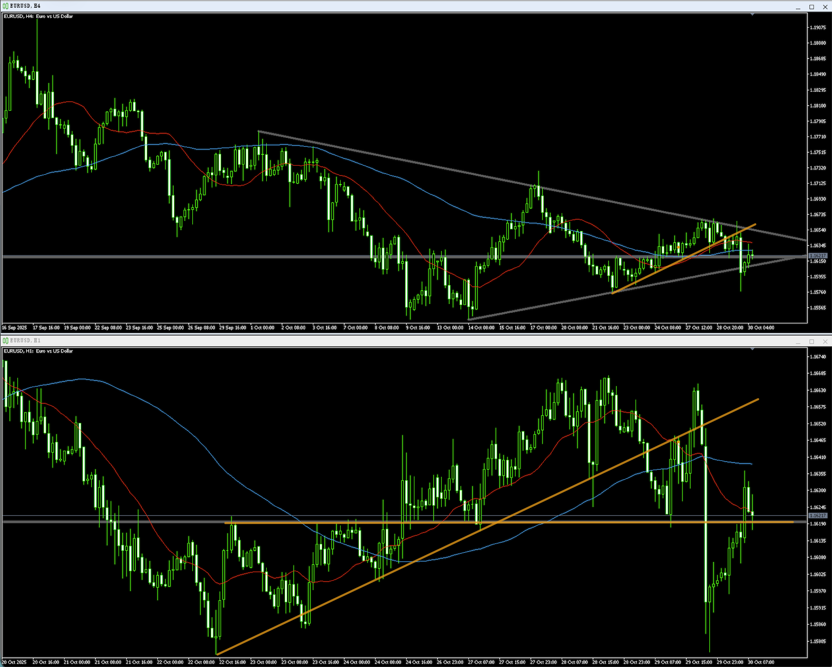 環境認識で4hをシンプルに見ている流れについてご紹介します。まずは4hで並べたチャートを見ます。何に注目しているかというと、