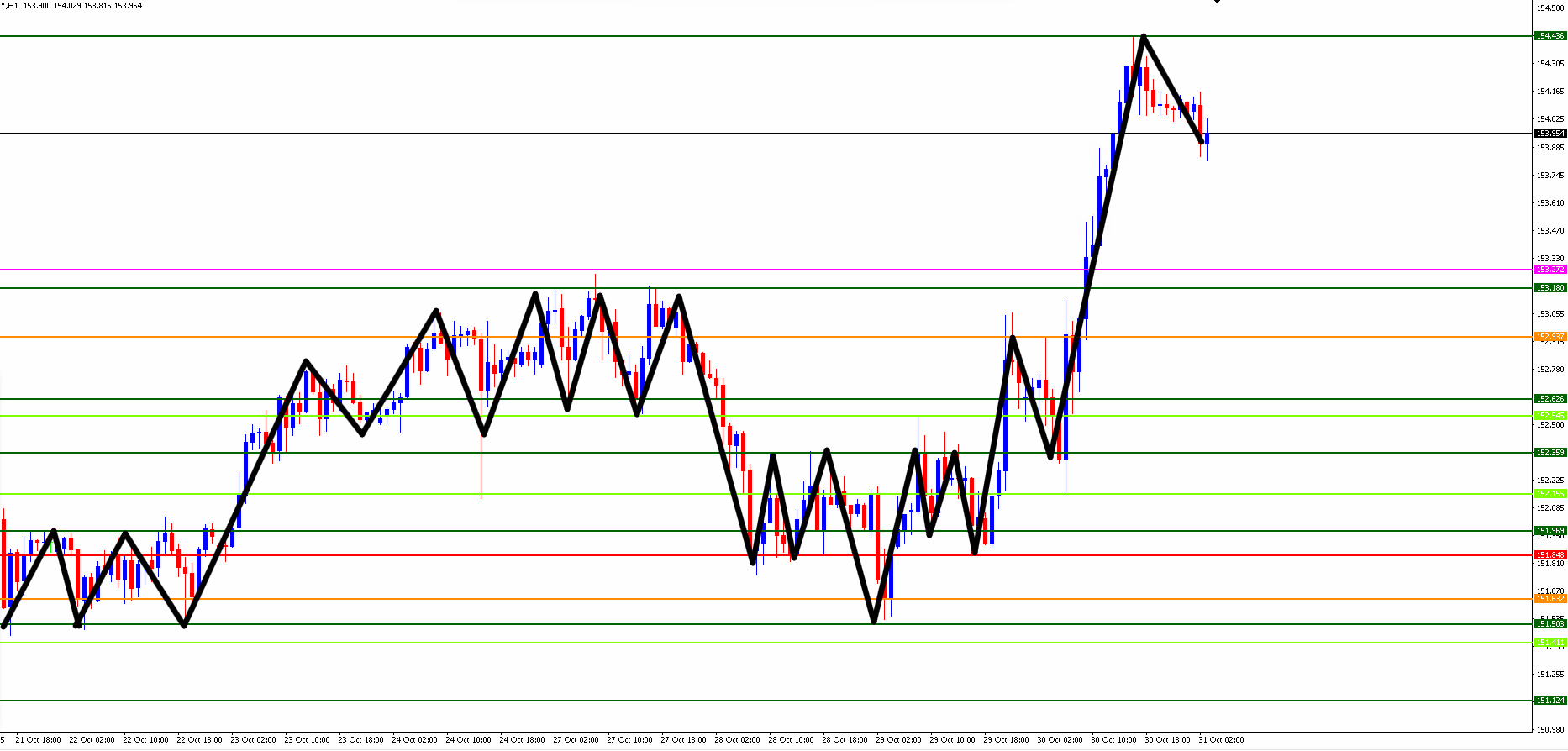 前回(2025年10月30日木曜日)のトレード予想の結果は以下になります。