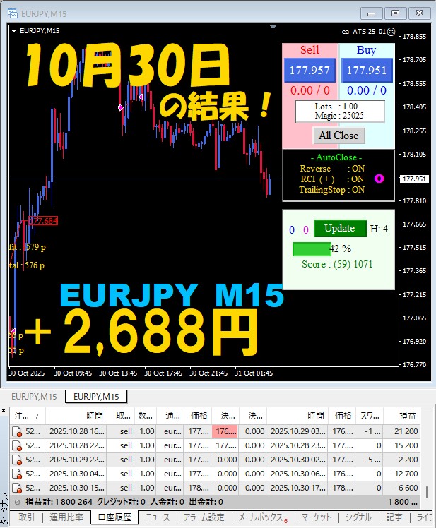 【EURJPY M15】前日の結果『ATS-25』 10月30日