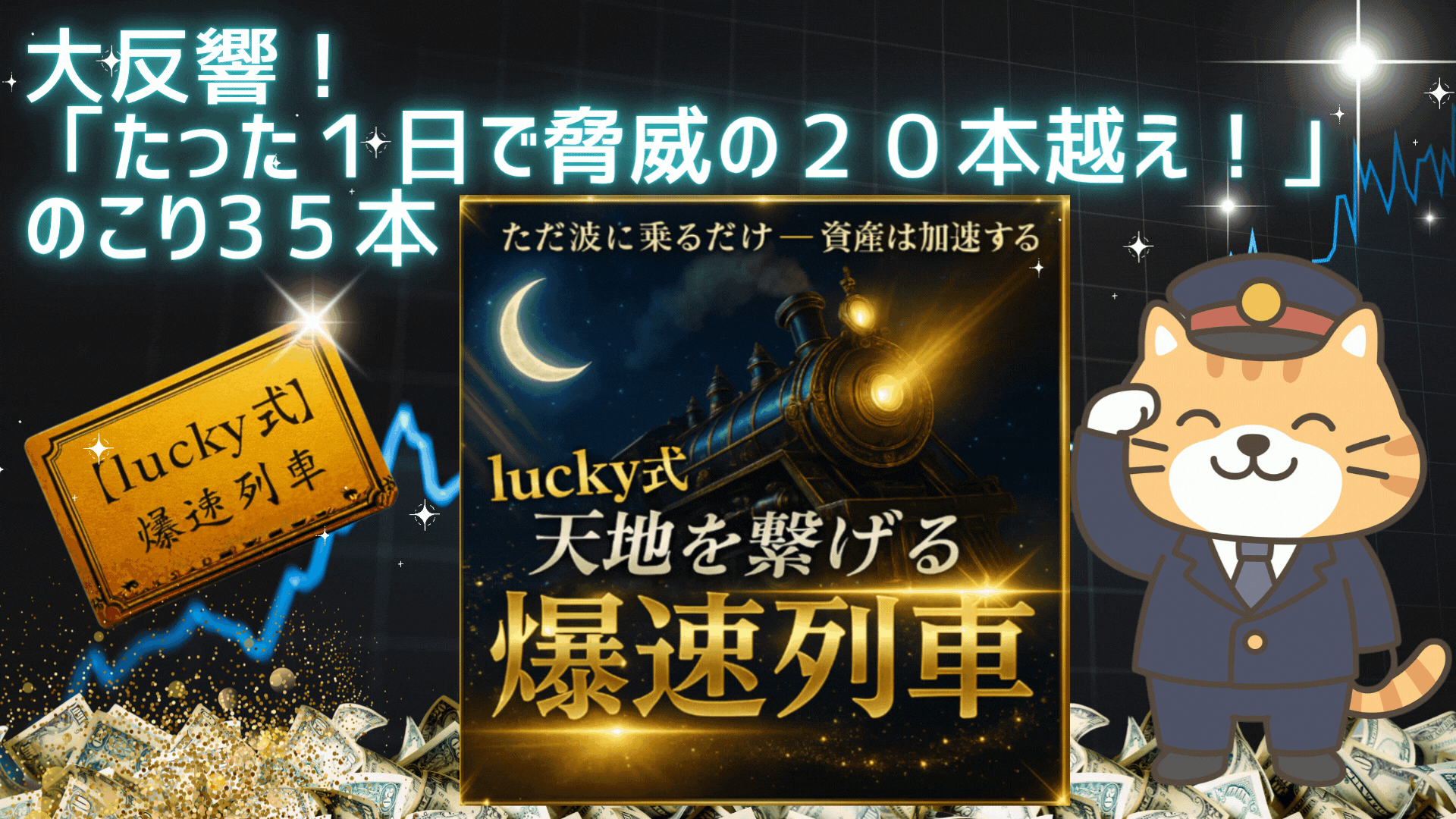 『【lucky式】爆速列車!~天地を繋ぎ資産を加速させる~』 が、想像を超える反響となっています。