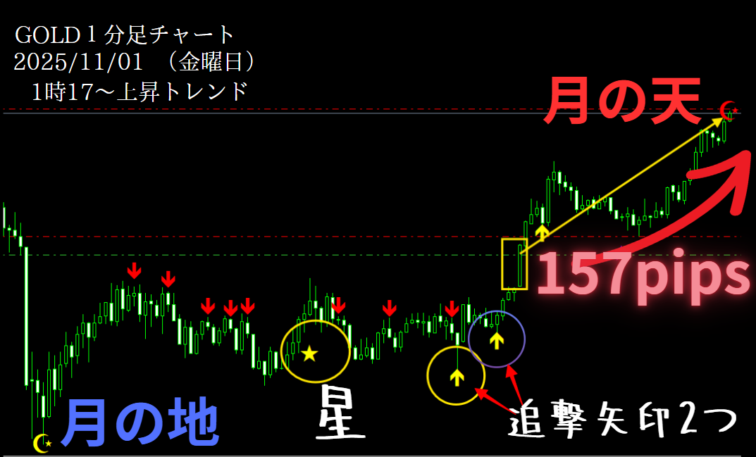 この🌙+★+⇧条件は黄金先読みパターンなので、