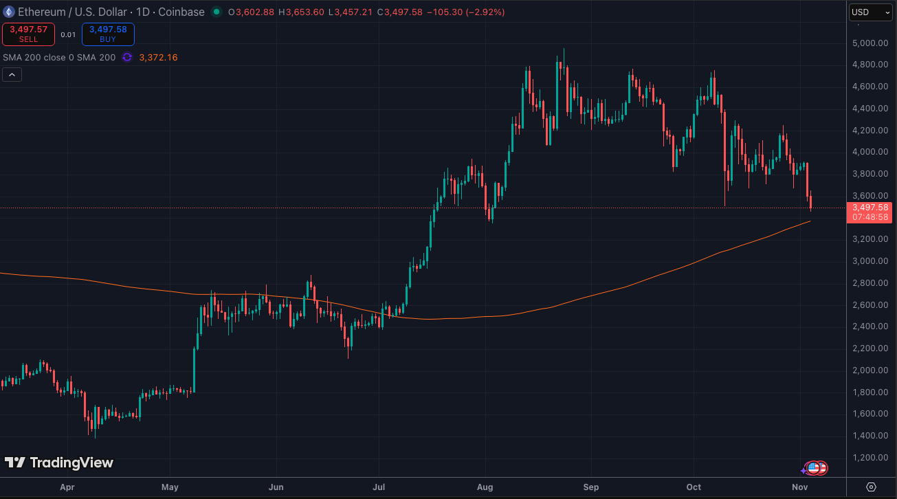 イーサリアムに関しては3500ドル付近まで下落し、この水準は今年の8月、10月の価格水準となっており、チャート的にもレジスタンスラインが機能しています。