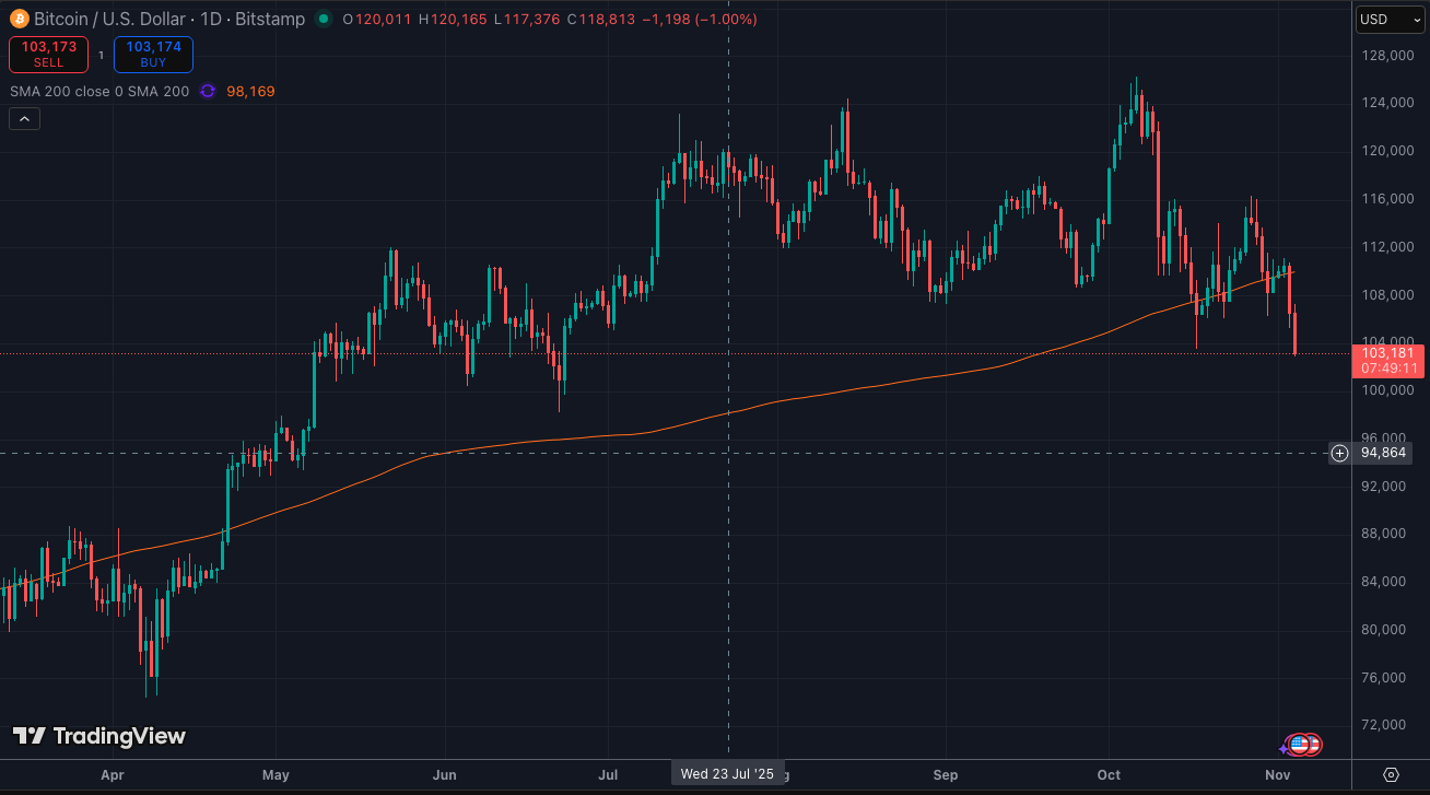 ビットコインは1日で4%下落し、これにより今年6月以降の最安値を更新しました。市場のセンチメントを示すビットコインの恐怖強欲指数(Fear & Greed Index)は、103,000ドルで「21」という、極めて弱気な指標を示しています。