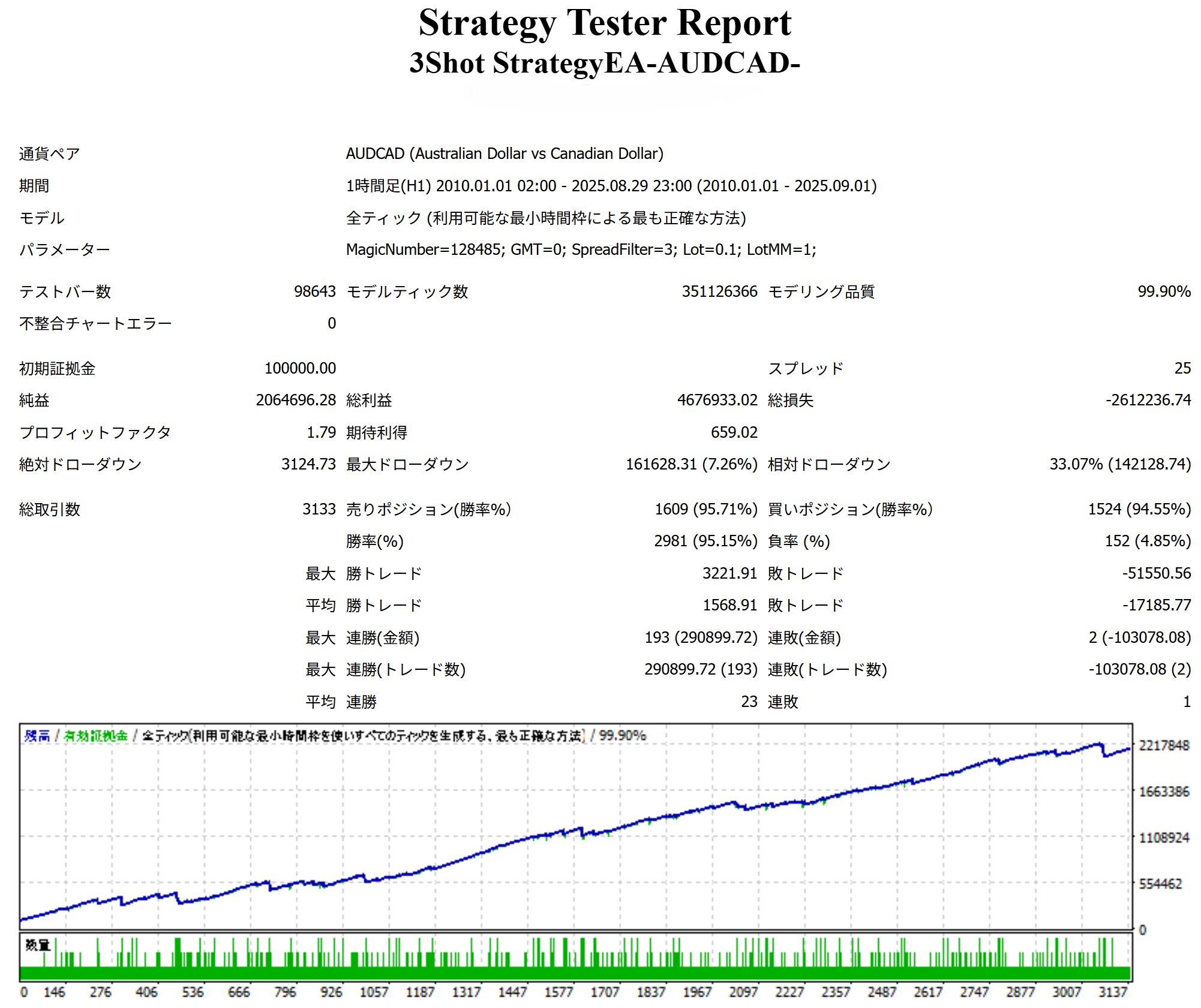 この理念をもとに開発されたのが「3Shot Strategy EA -AUDCAD-」 である。