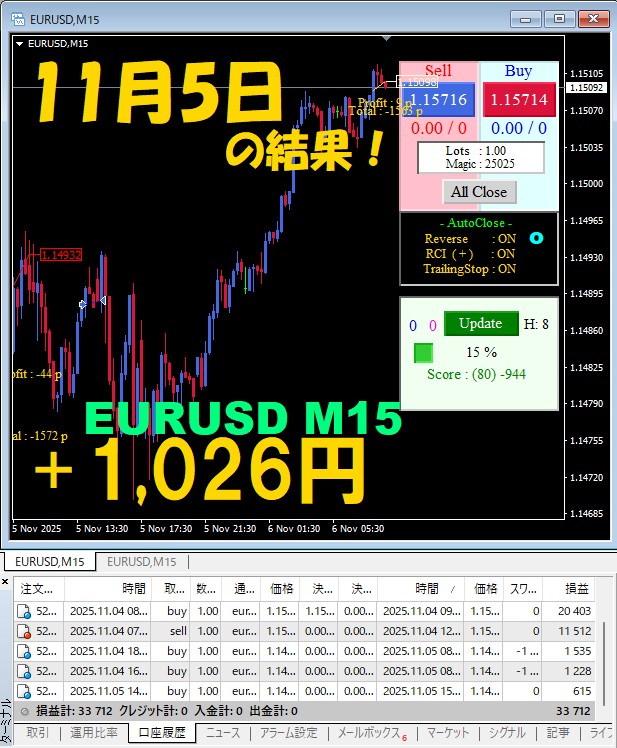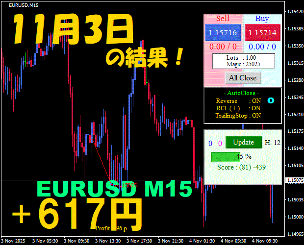 【EURUSD M15】前日の結果『ATS-25』 11月5日