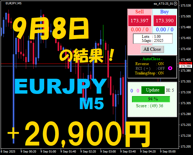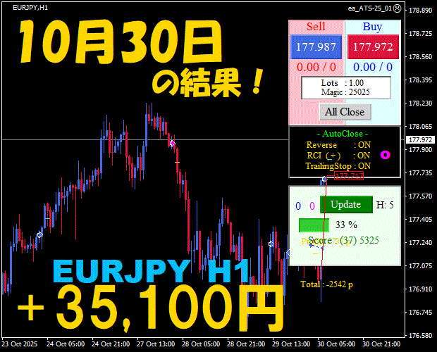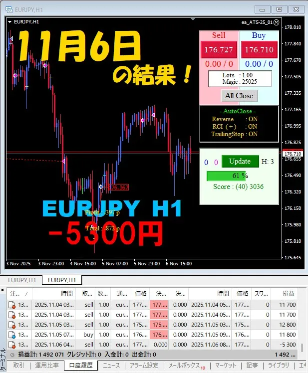 【前日の結果】EURJPY H1 / M5 『ATS-25』11月6日