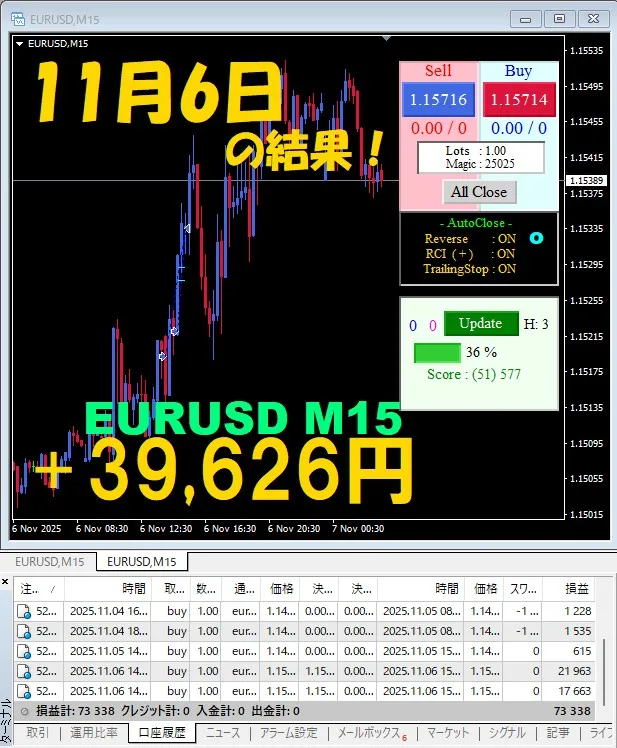 【EURUSD M15】前日の結果『ATS-25』 11月6日