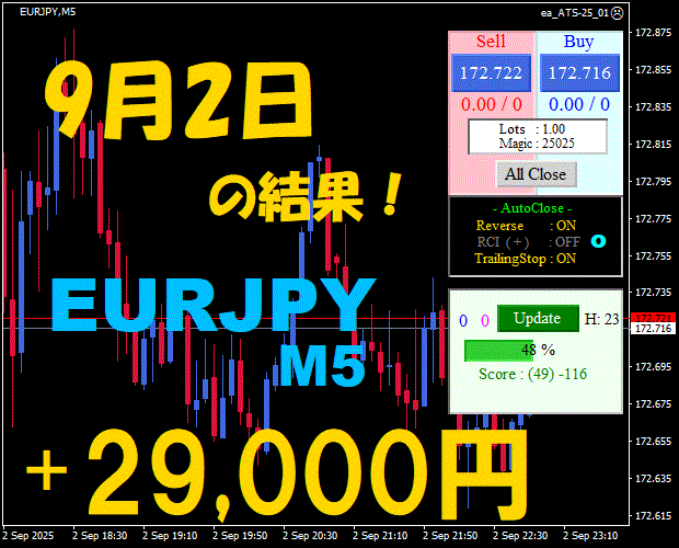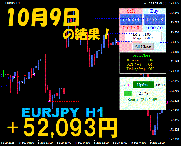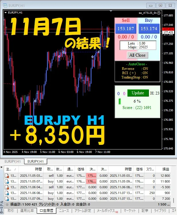 【前日の結果】EURJPY H1 / M5 『ATS-25』11月7日
