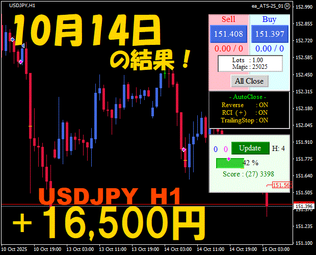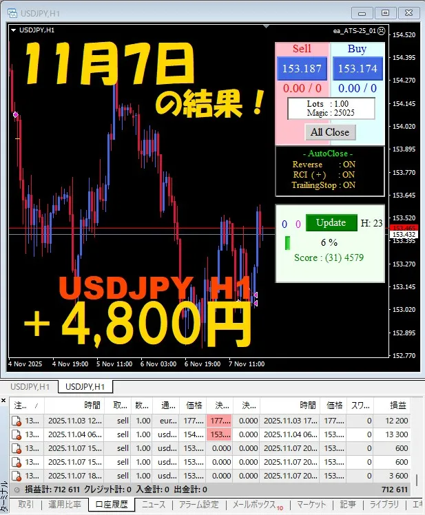 【前日の結果】USDJPY H1 / M5 『ATS-25』11月7日