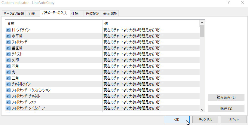 .setファイルは、同じインジケーターでのみ正しく読み込むことができます。- 別のPCや別のMT4で使用する場合は、対象のMT4の