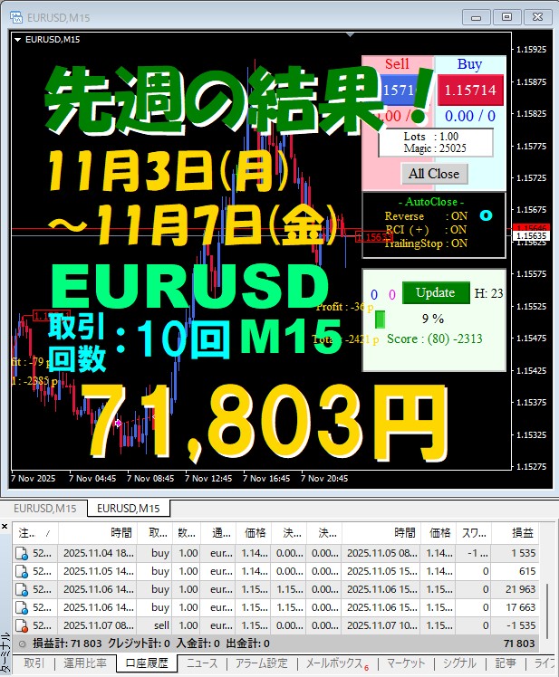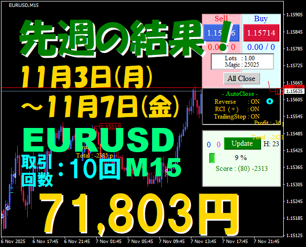 M15 週間報告!【EURUSD】ATS-25 ☆11月3日(月)~11月7日(金)