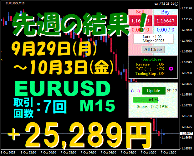 M15 週間報告!【EURUSD】ATS-25 ☆10月20日(月)~10月24日(金)