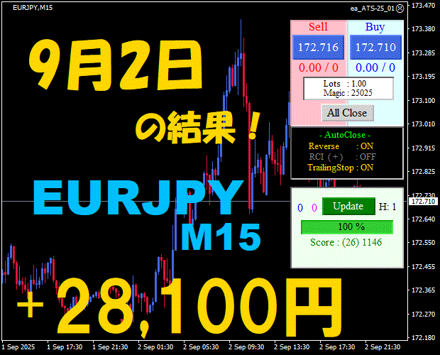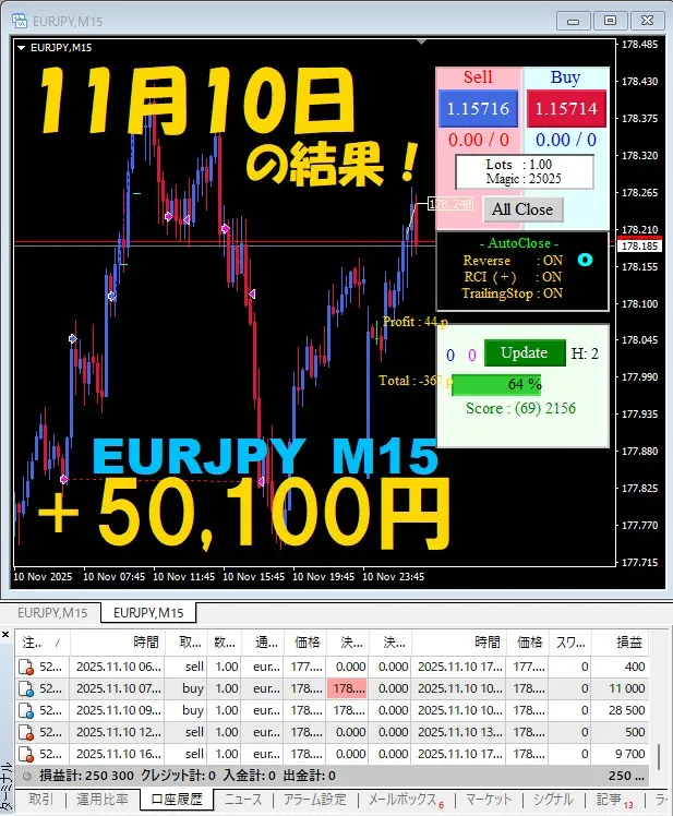 【EURJPY M15】前日の結果『ATS-25』 11月10日
