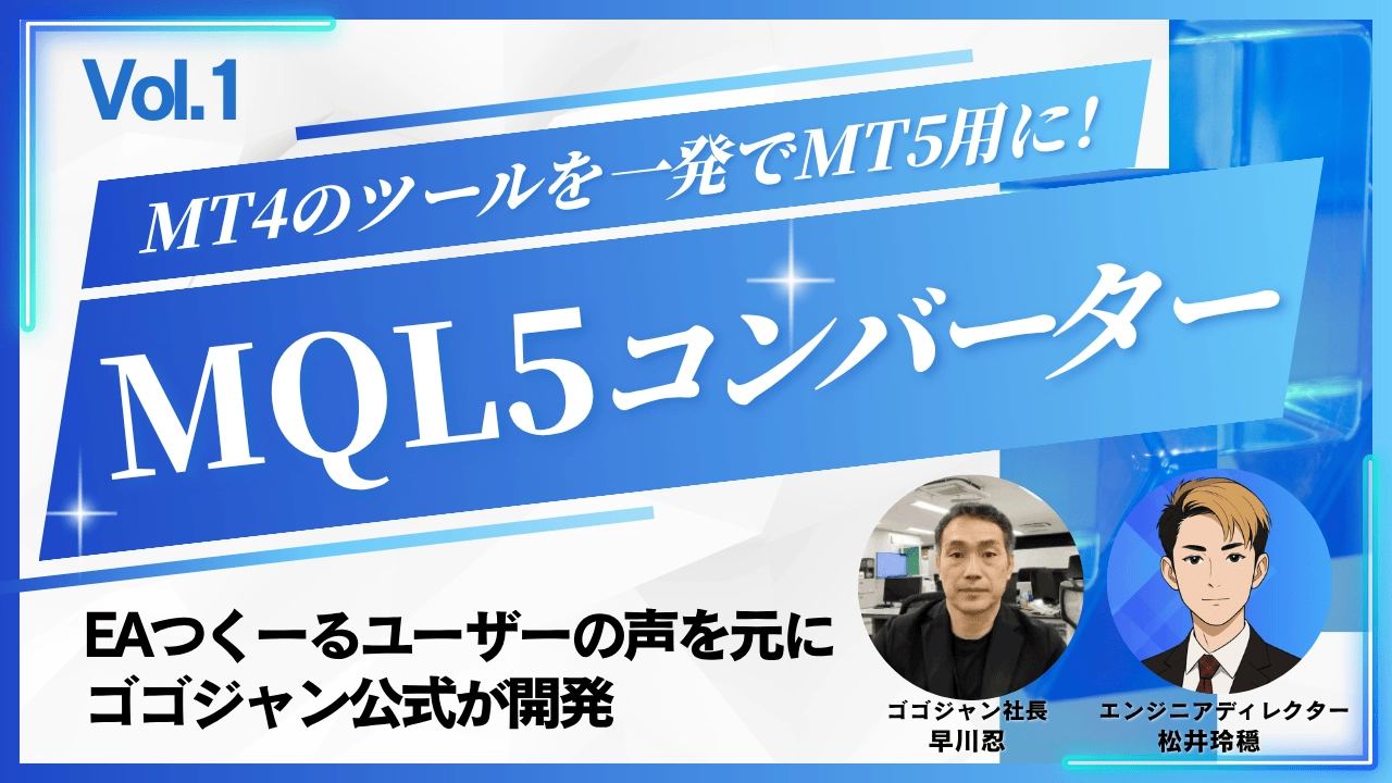 今回は、弊社が開発したMQL5コンバーターの核心に迫るべく、ゴゴジャンのエンジニアディレクターである松井さんにお越しいただきました。