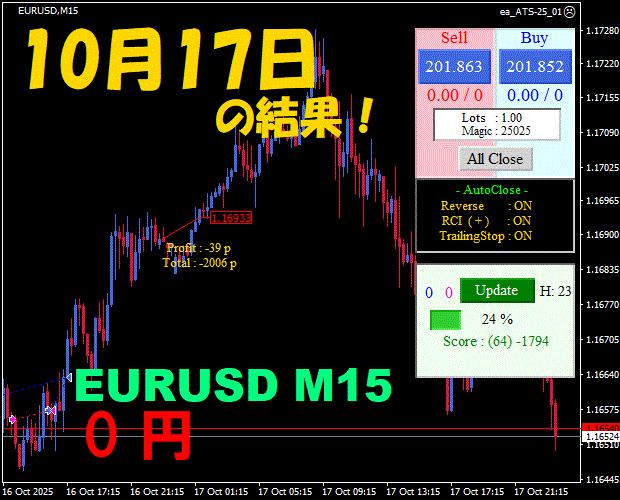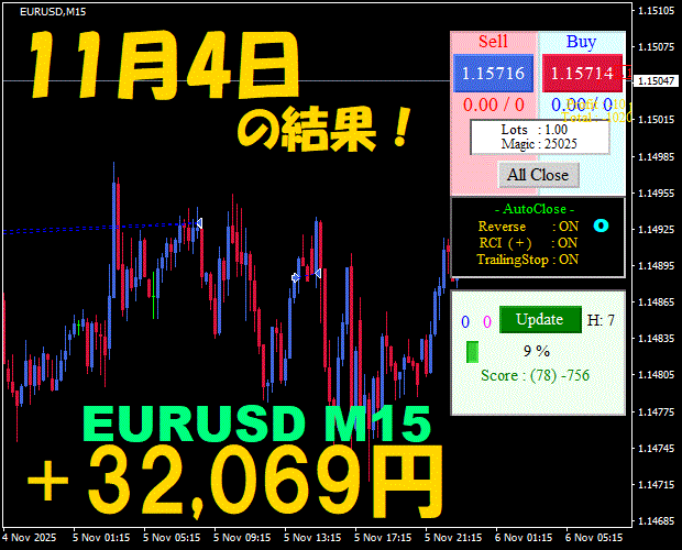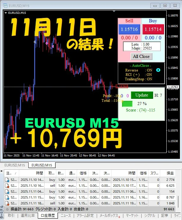 【EURUSD M15】前日の結果『ATS-25』 11月11日