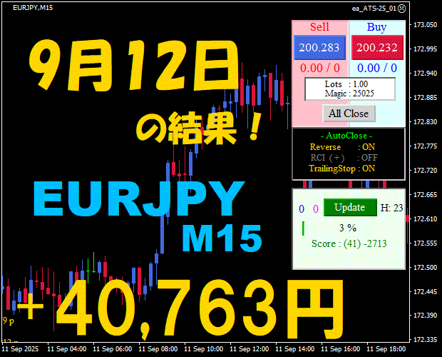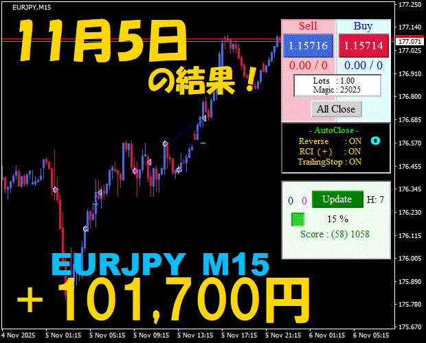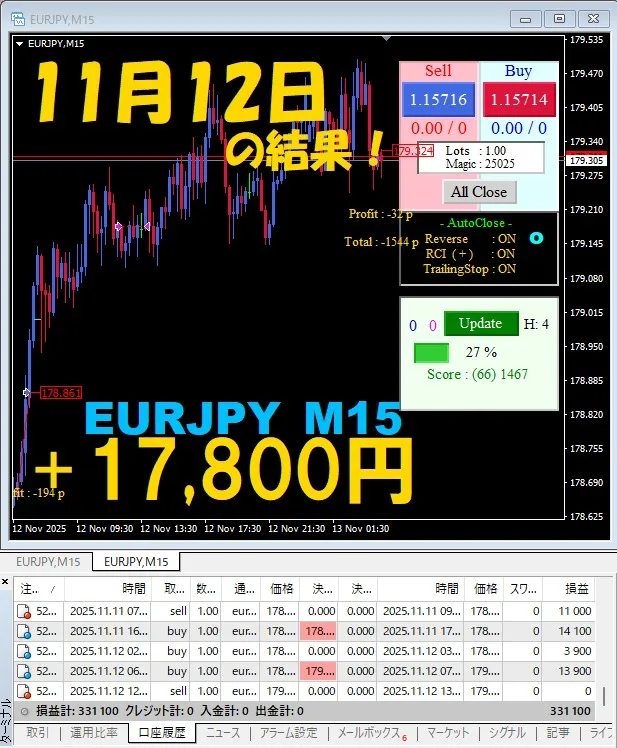 【EURJPY M15】前日の結果『ATS-25』 11月12日