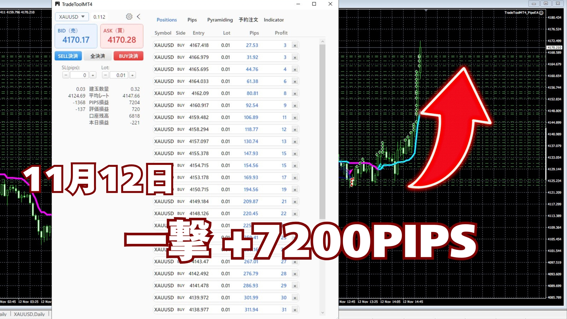 【最新実績】ピラミッディング機能で驚異の+7,200 pips達成!