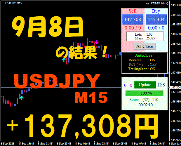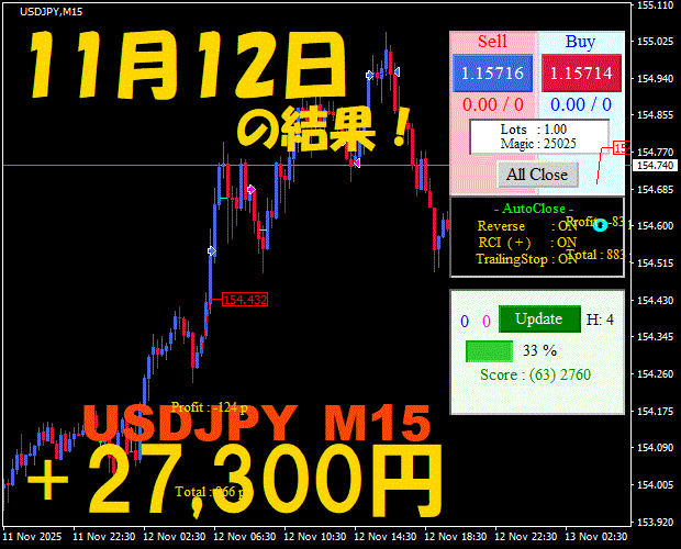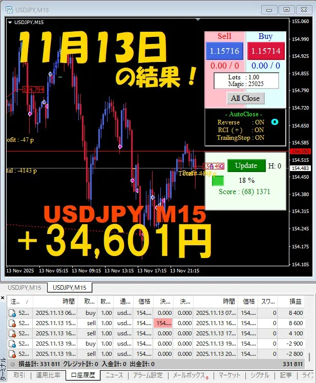 【USDJPY M15】前日の結果『ATS-25』 11月13日