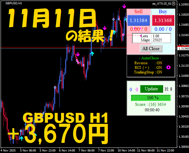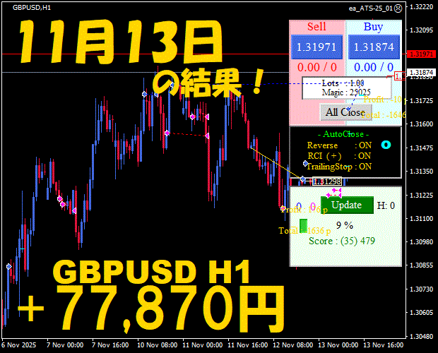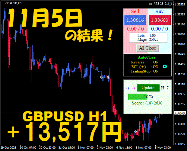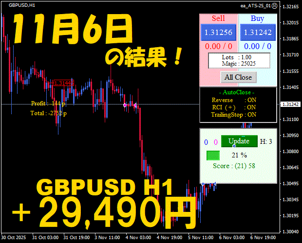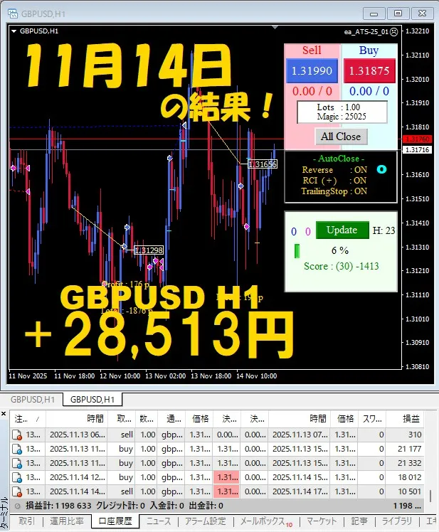 【前日の結果】GBPJPY H1 / M5 『ATS-25』11月14日