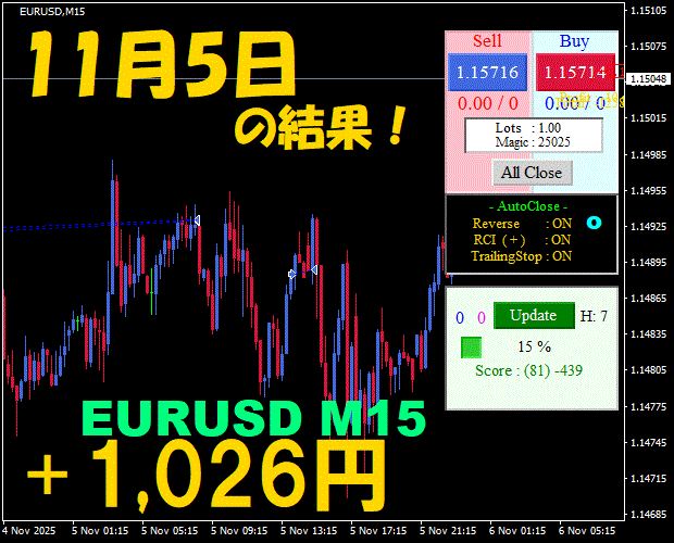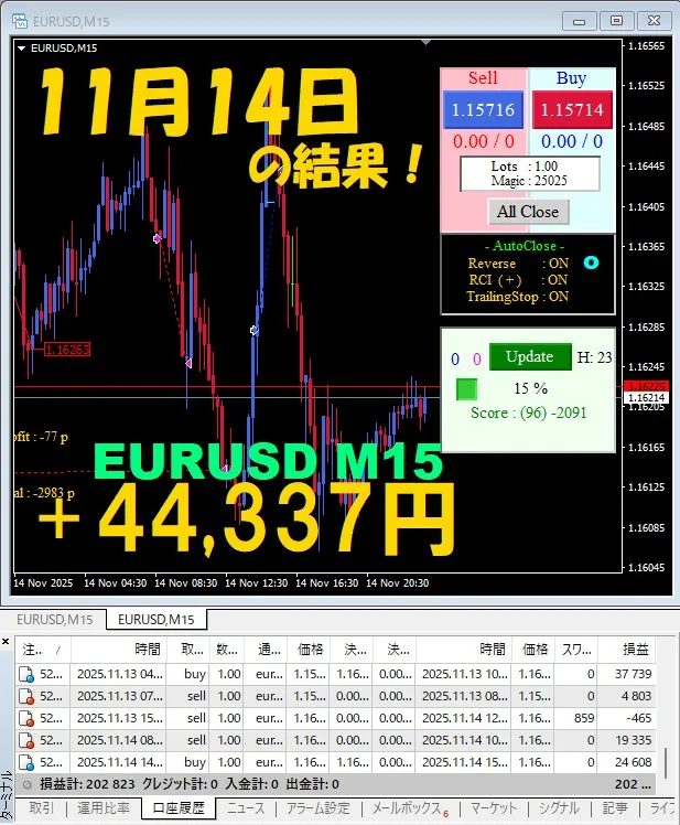 【EURUSD M15】前日の結果『ATS-25』 11月14日
