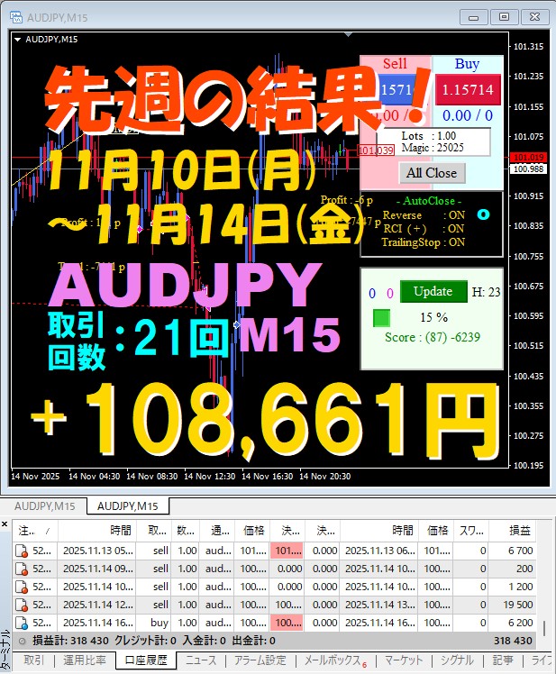 M15 週間報告!【AUDJPY】ATS-25 ☆11月10日(月)~11月14日(金)
