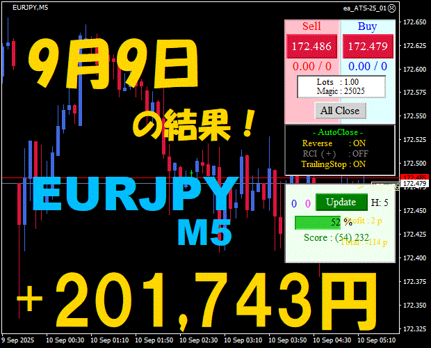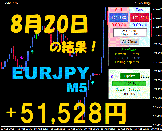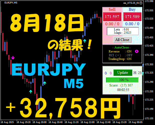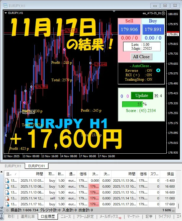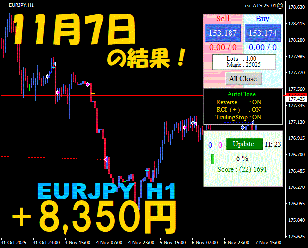 【前日の結果】EURJPY H1 / M5 『ATS-25』11月17日