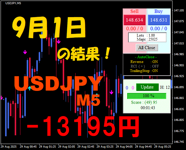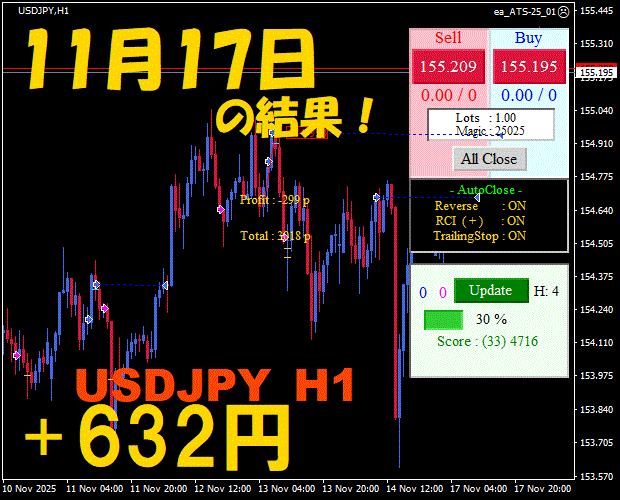 【前日の結果】USDJPY H1 / M5 『ATS-25』11月17日