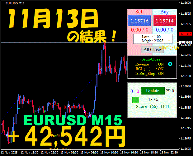 【EURUSD M15】前日の結果『ATS-25』 11月17日