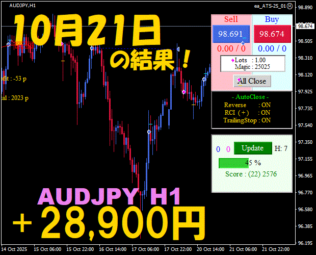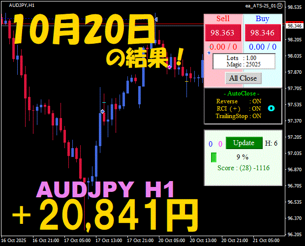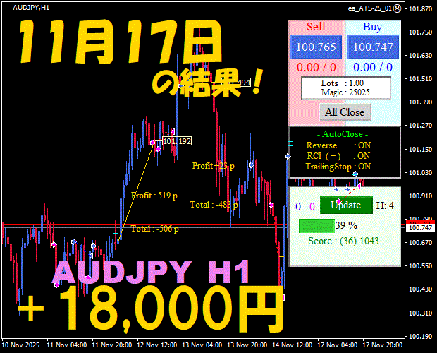 【前日の結果】AUDJPY H1 / M5 『ATS-25』11月18日