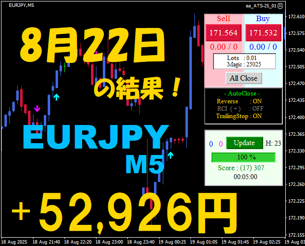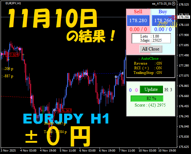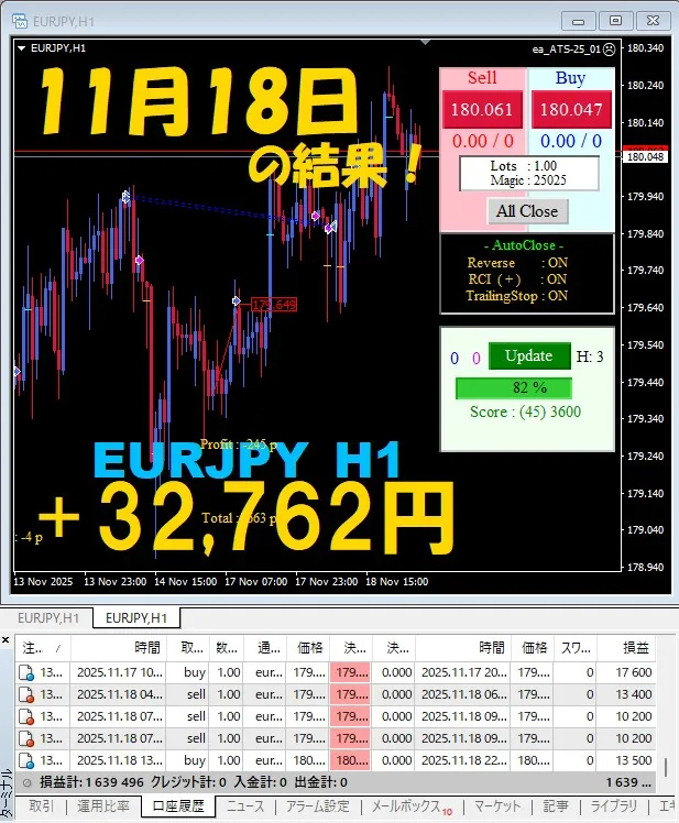 【前日の結果】EURJPY H1 / M5 『ATS-25』11月18日