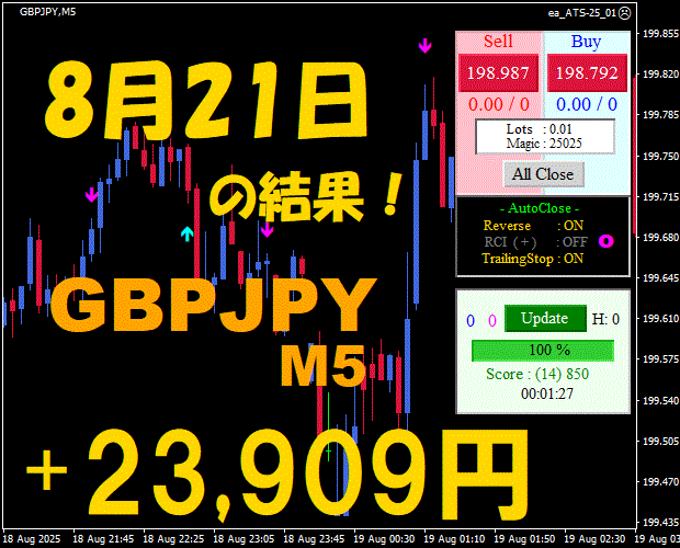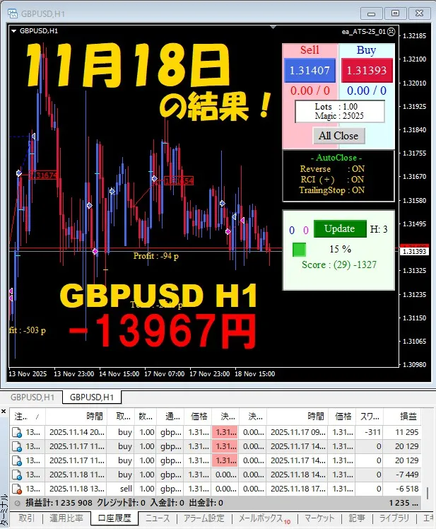 【前日の結果】GBPJPY H1 / M5 『ATS-25』11月18日