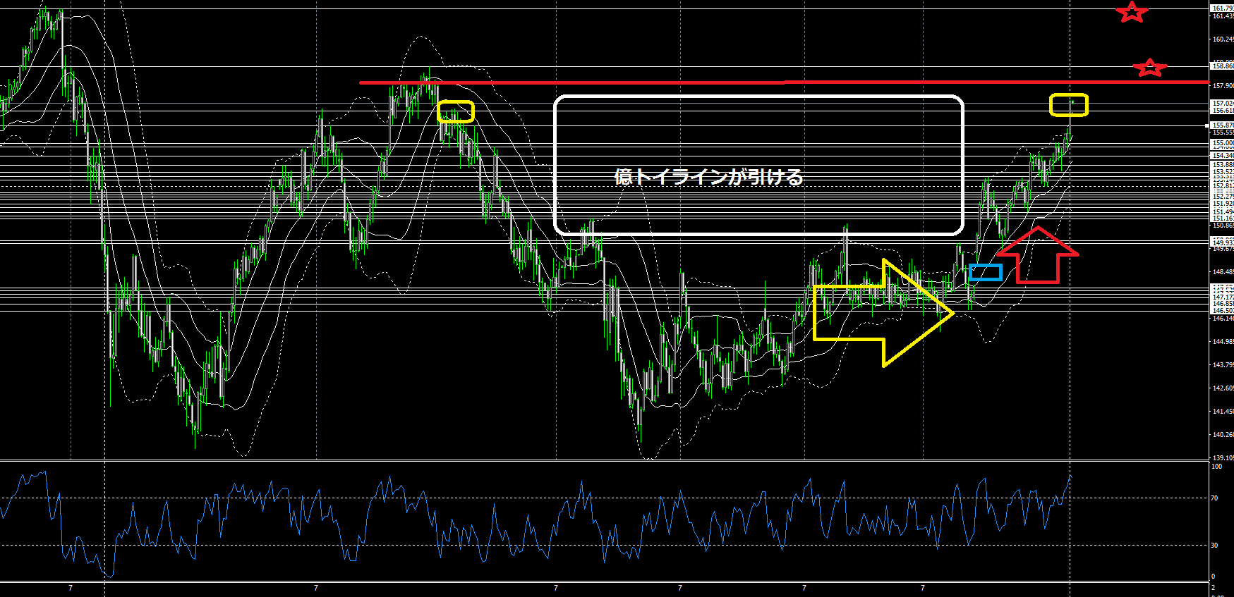 押し目を付けてあげて来たので、戻り売り目線で億トレチャートを見て売る、若しくはブレイク売りをする、この2択です。