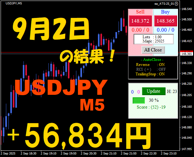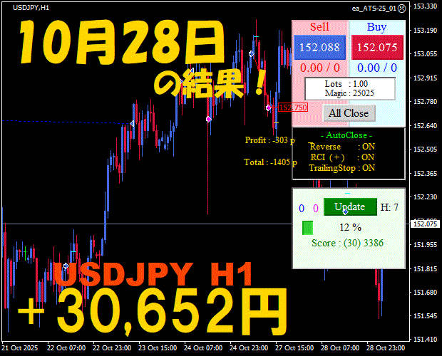 【前日の結果】USDJPY H1 / M5 『ATS-25』11月19日