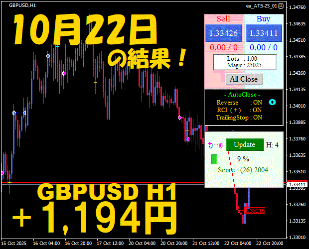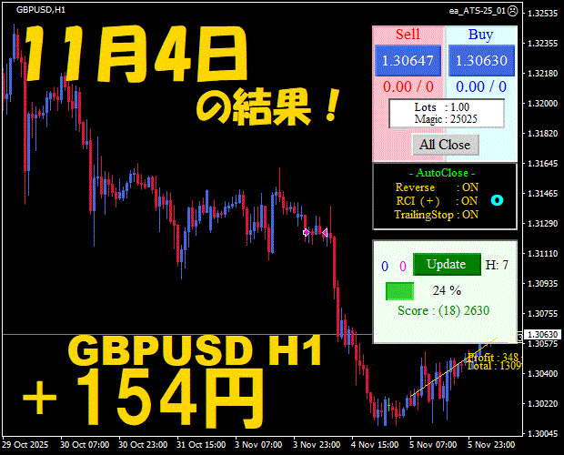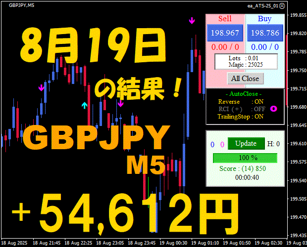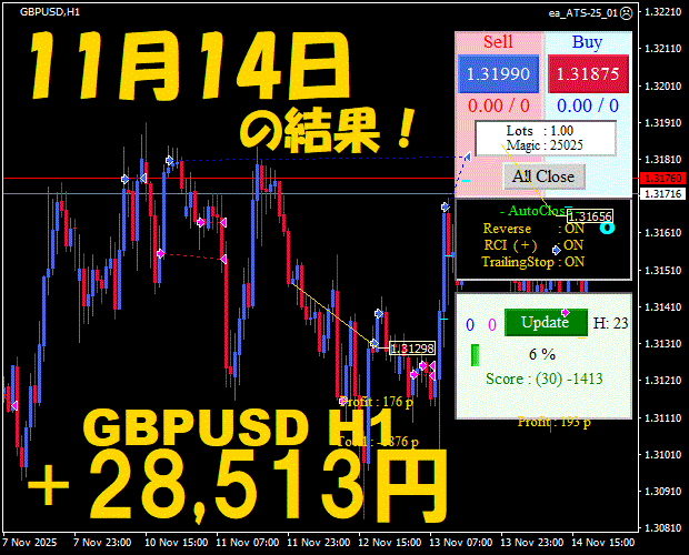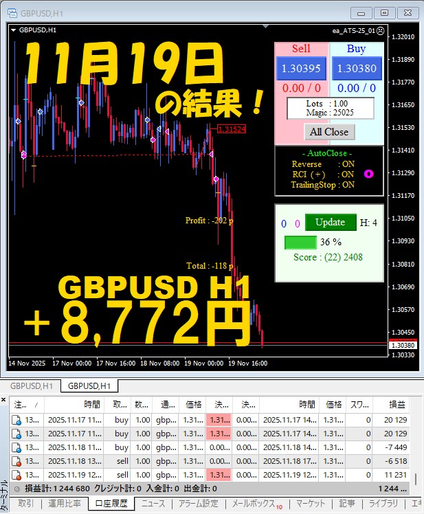 【前日の結果】GBPJPY H1 / M5 『ATS-25』11月19日