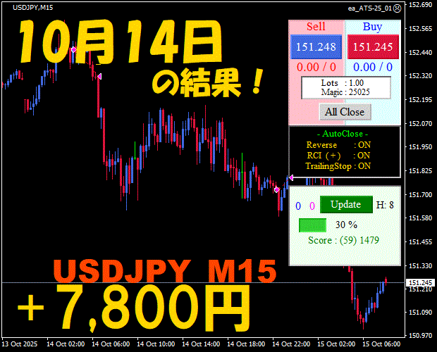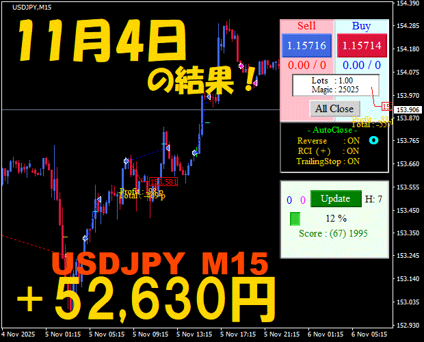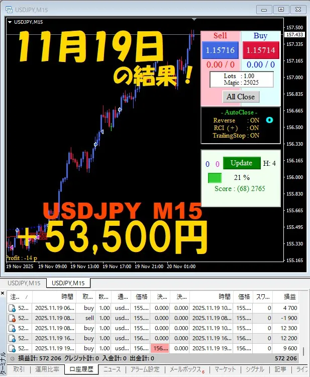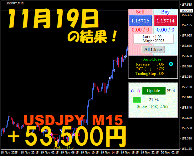 【USDJPY M15】前日の結果『ATS-25』 11月19日