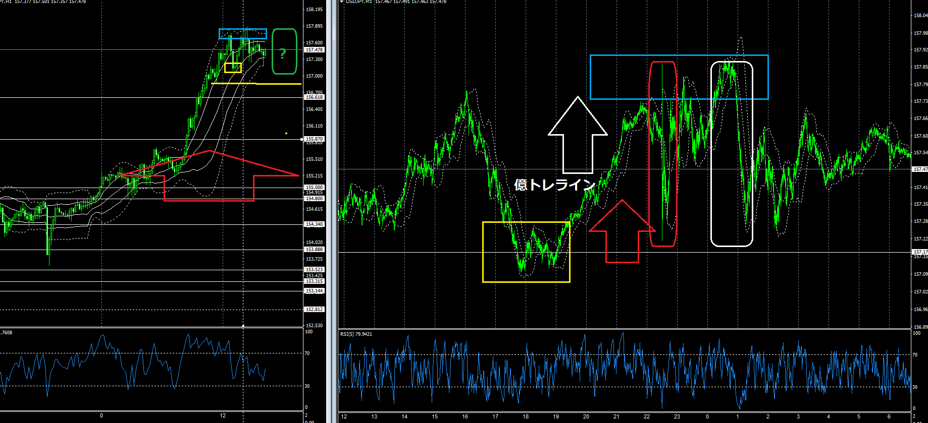 黄色・青□ゾーンが反転場面と言う事が分かりますが、黄色□ゾーンを億トレチャート&億トレラインで攻めるLポジが成功しました。