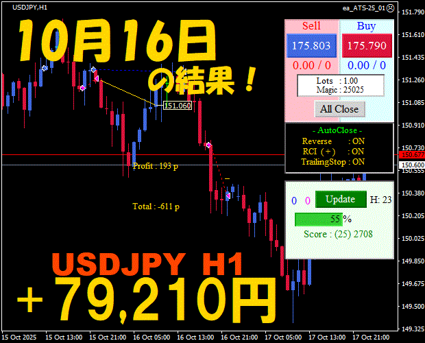 【前日の結果】USDJPY H1 / M5 『ATS-25』11月20日
