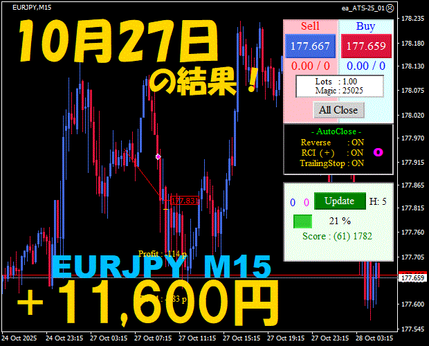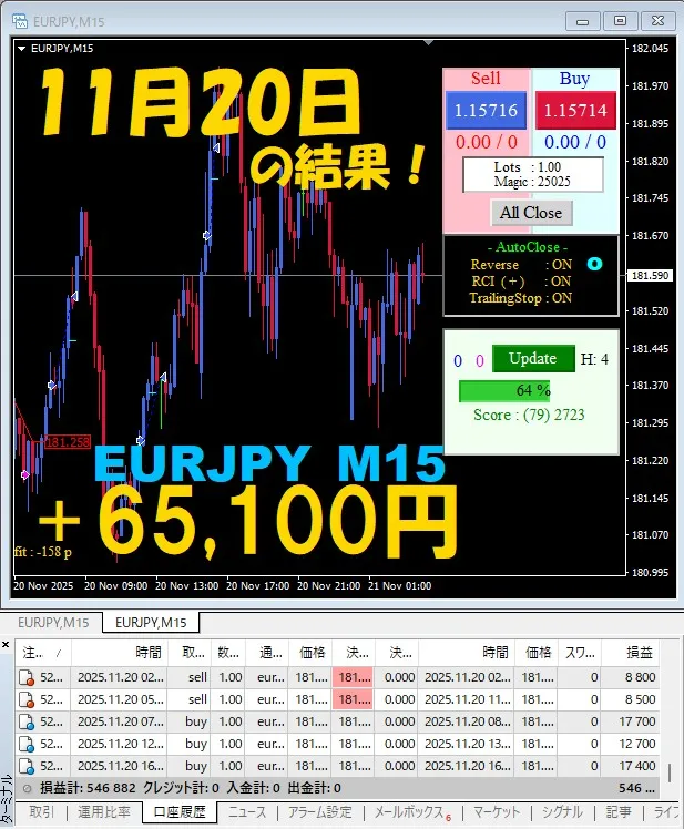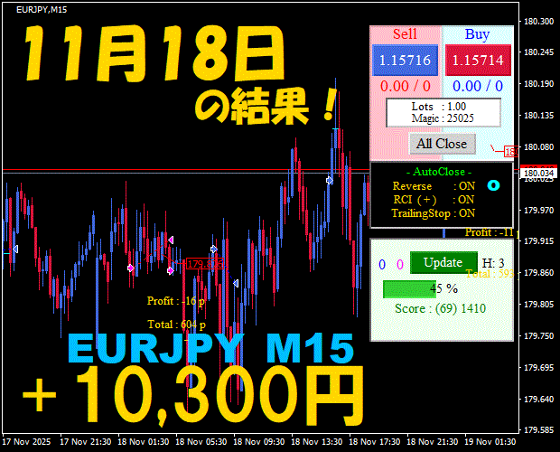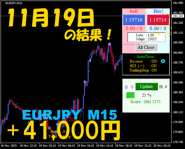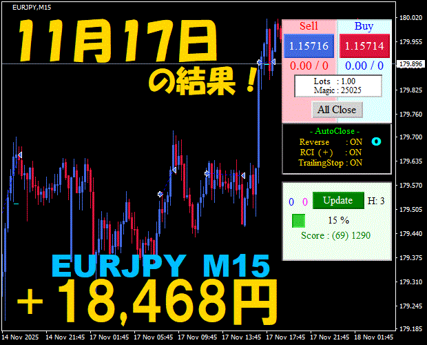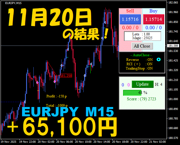 【EURJPY M15】前日の結果『ATS-25』 11月20日