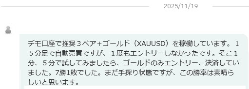 本日は三尊波動FX参加者のご感想。