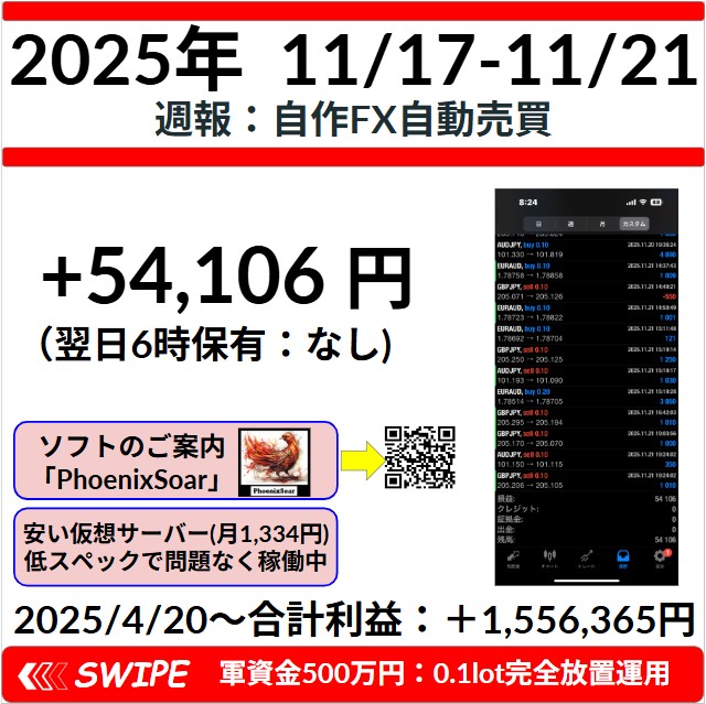 価格50%Off!【週報:2025.11.17-2025.11.21】オリジナルEA「PhoenixSoar」の成績報告