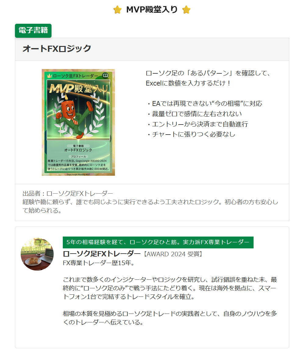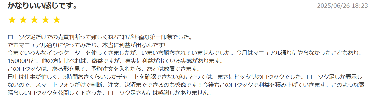 今回のロジックで、しっかりと利益を出されたとおっしゃって頂いています。