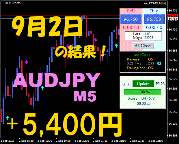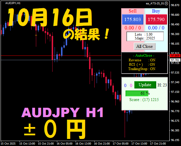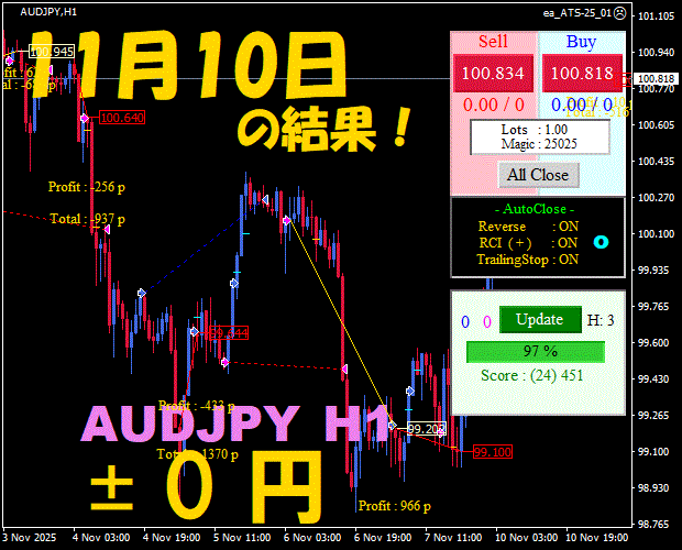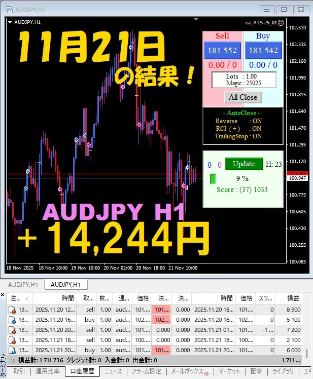 【前日の結果】AUDJPY H1 / M5 『ATS-25』11月21日