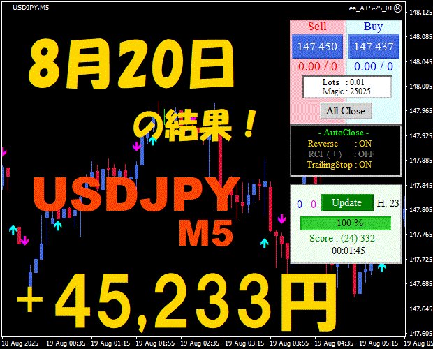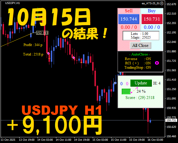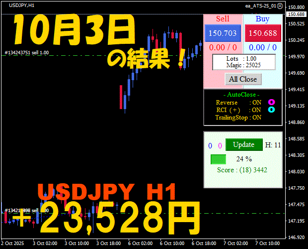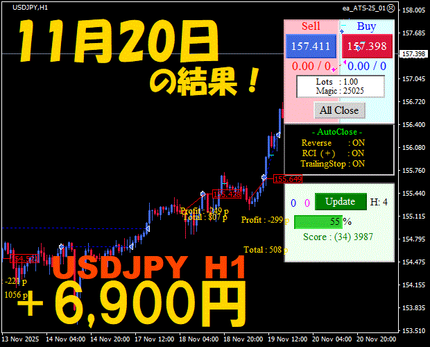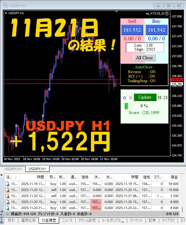 【前日の結果】USDJPY H1 / M5 『ATS-25』11月21日