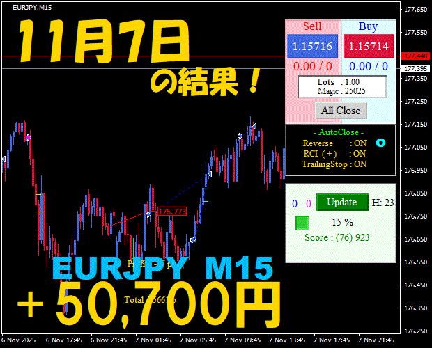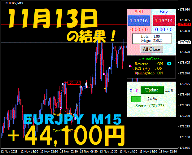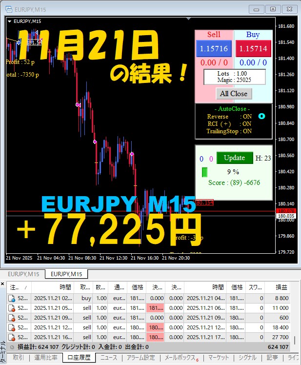 【EURJPY M15】前日の結果『ATS-25』 11月21日