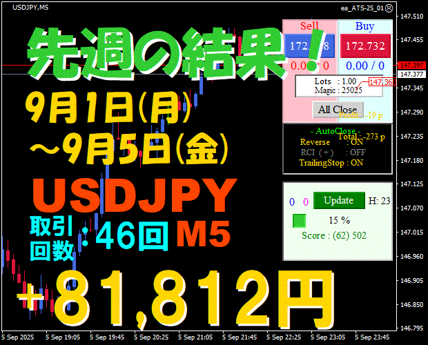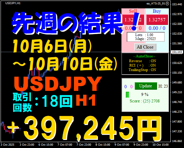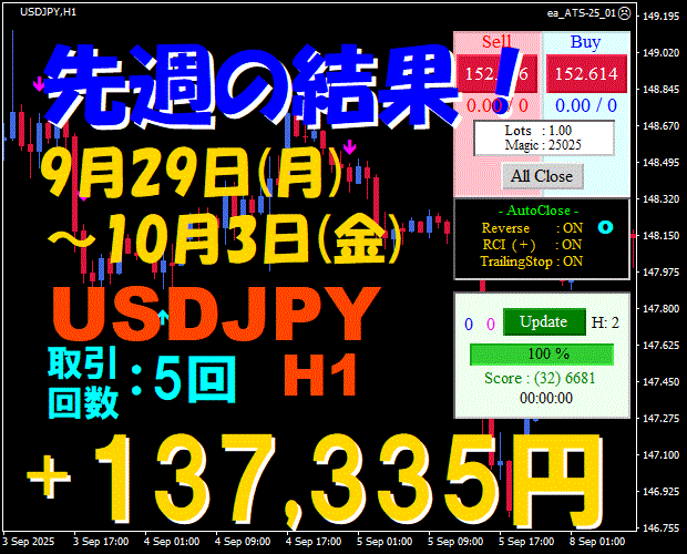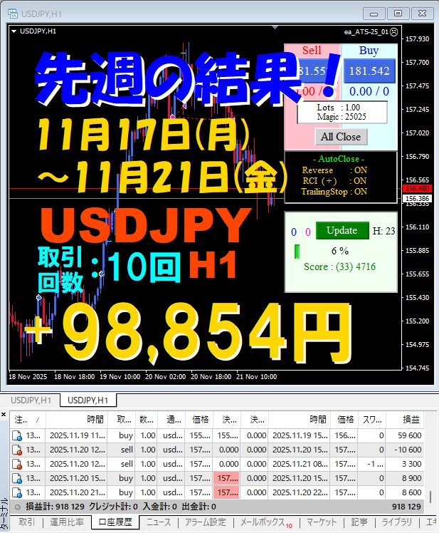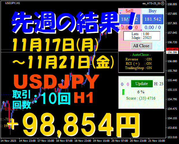 【先週の結果】USDJPY H1 『ATS-25』11月17日(月)~11月21日(金)