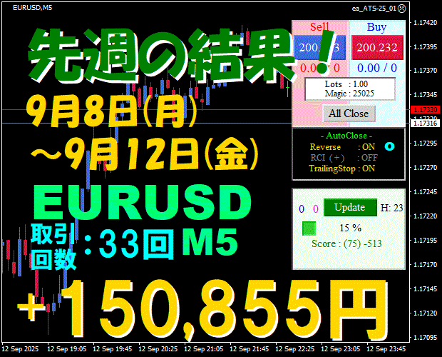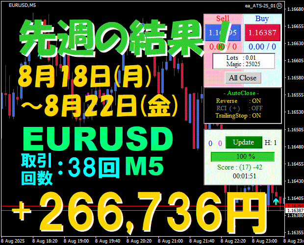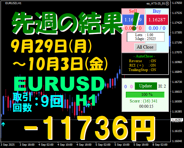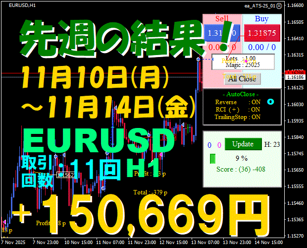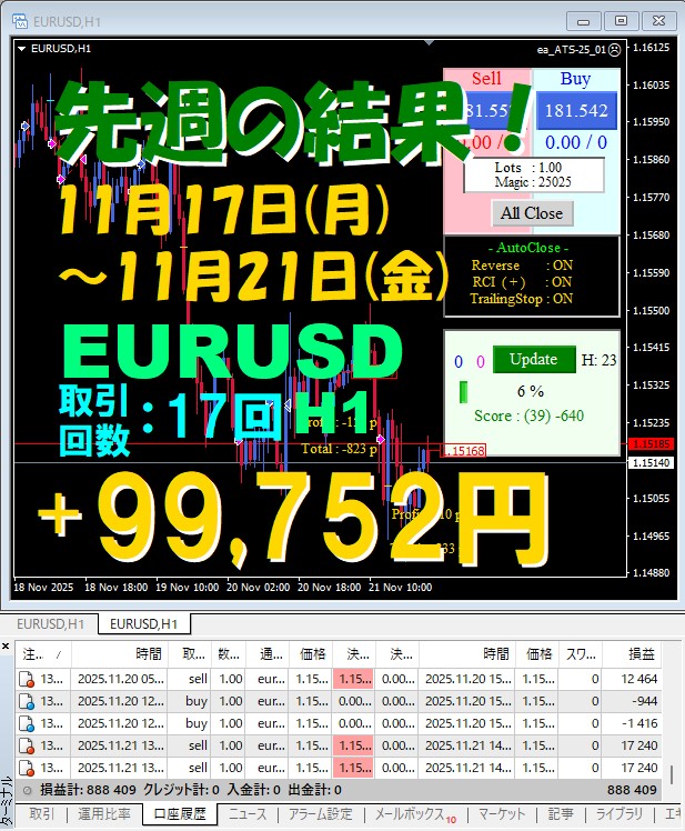 【先週の結果】EURUSD H1 『ATS-25』11月17日(月)~11月21日(金)