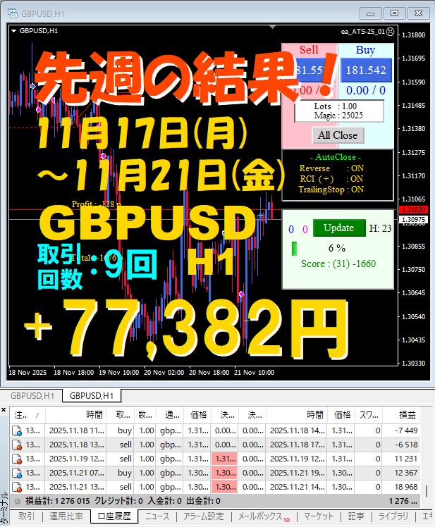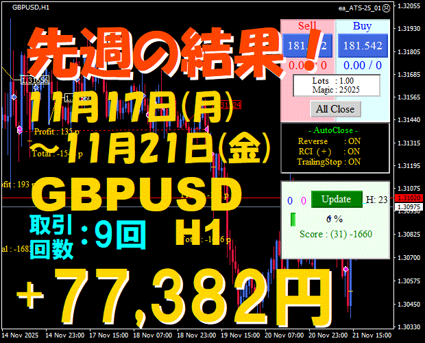 【先週の結果】GBPUSD H1 『ATS-25』11月17日(月)~11月21日(金)