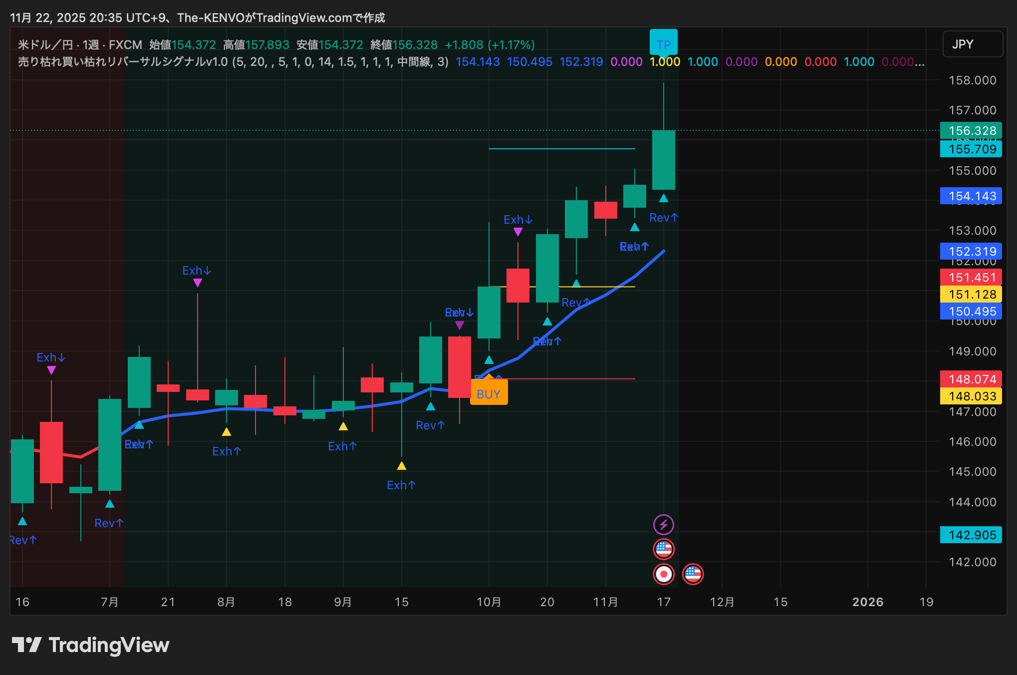 【実戦解説その5】 売り枯れ買い枯れリバーサルシグナル v1.0 — ドル円“週足”への応用で見えたトレンド転換の核心