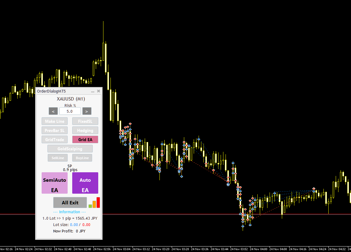 相場が動く方向に対してロットを増やしていく自動最適化型。