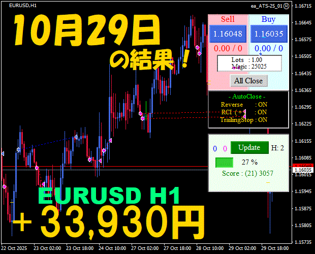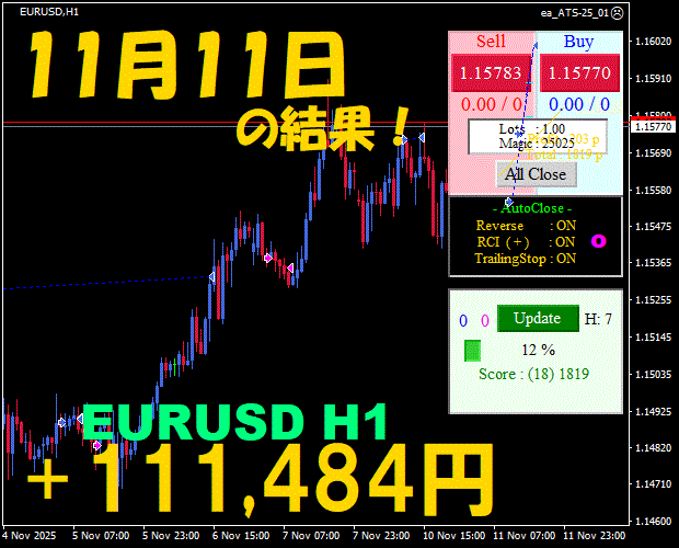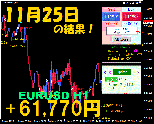 【前日の結果】EURUSD H1 / M5 『ATS-25』11月25日